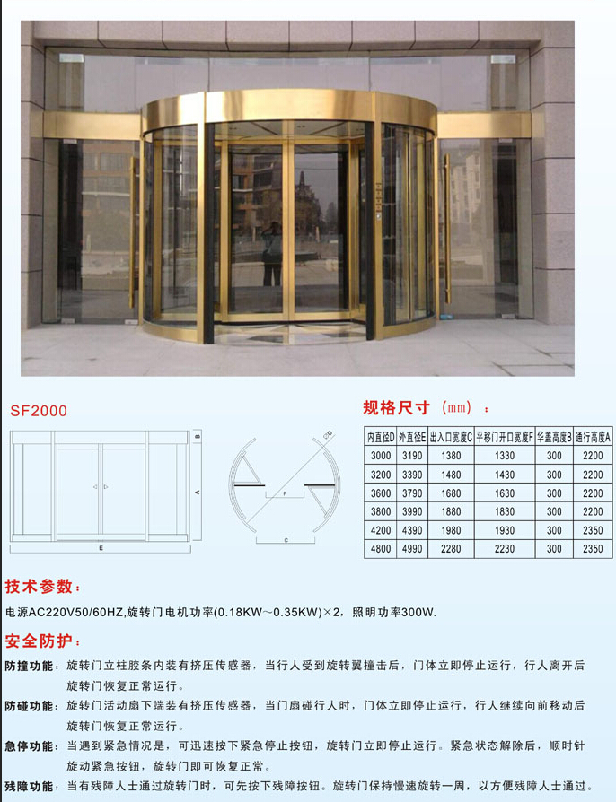 產(chǎn)品分類:旋轉(zhuǎn)門 產(chǎn)品簡介:豪華兩翼旋轉(zhuǎn)門為自動門行業(yè)中的高端產(chǎn)品,有機的將旋轉(zhuǎn)門與平移門的功能結(jié)為一體。